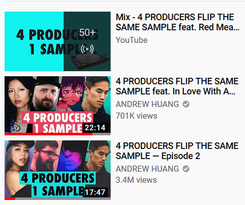 Andrew Huang makes music and videos about making music. I love his channel and I really love his series 4 Producers Flip the Same Sample. While the parts in the video that have the producers explaining their processes is kinda interesting, its the sheer display of creativity and range of musical responses to the same source that really impresses. I have listened to the most recent video in the series on repeat. Headphones recommended.