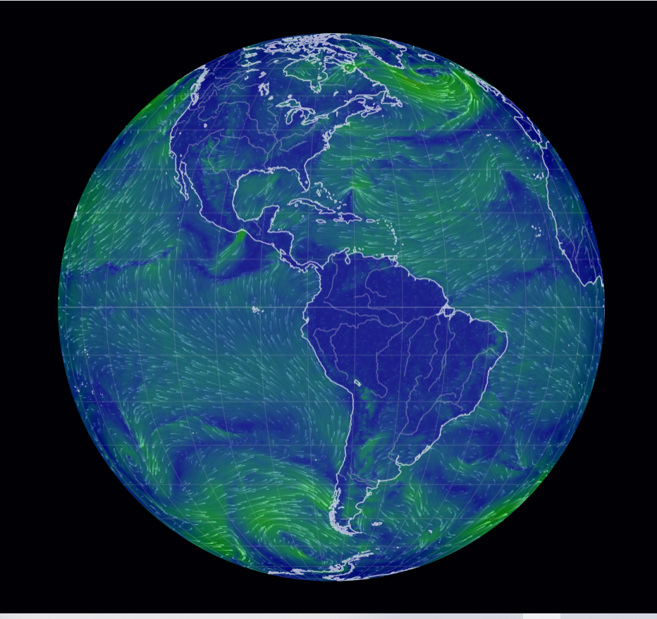 earth is a visualization of global weather conditions forecast by supercomputers and updated every three hours. Ocean surface current estimates are updated every five days. Ocean waves are updated every three hours. Aurora updated every thirty minutes. -- [recommended by Reader K.]